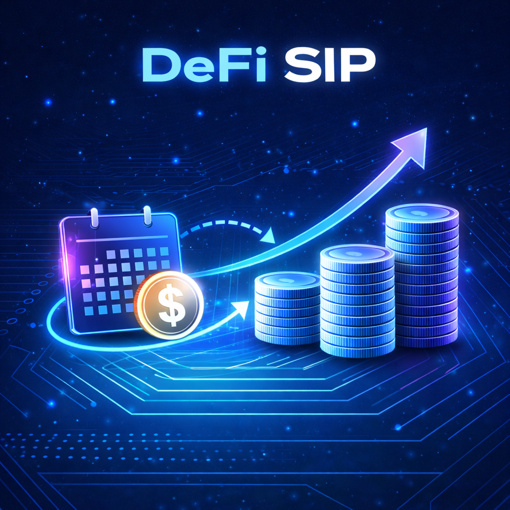 DeFi SIP (Systematic Investment Plan) means investing a fixed amount regularly in crypto or DeFi assets using smart contracts.
